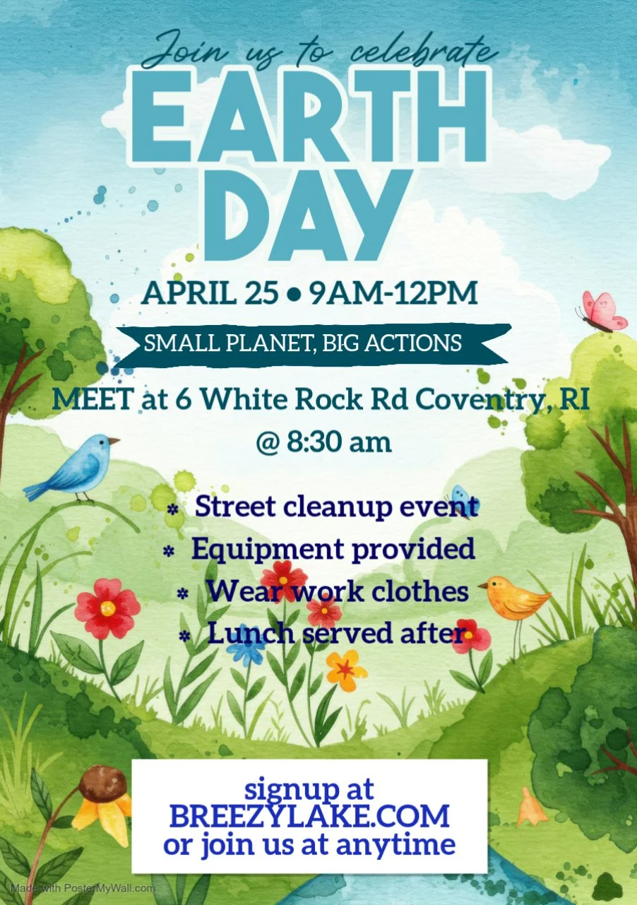 There are many benefits to cleaning Breezy Lake for the neighborhood and the Town of Coventry that include boating, swimming, fishing and wildlife. With those benefits comes a responsibility. The lake is in trouble and we need your help.